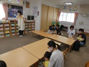 最初に園長先生からお話や参加者の紹介があり、初参加の9月に入園した新しいお友だちについても