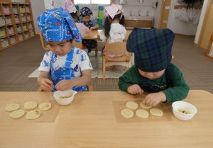 それぞれに自分の好きな量のおいもを乗せて無事にオリジナルのさつまいもクッキーが完成しました。