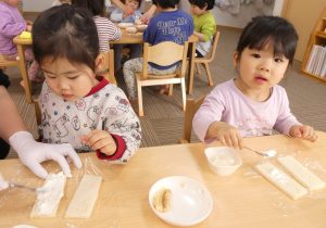 食育活動では節分にちなんだ「恵方巻ロール」を作りました。