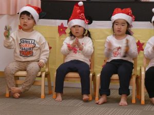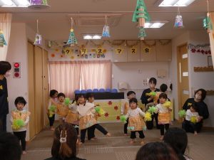 その二日後の20日(土)には、クリスマス発表会を行い、お家の方に見てもらいました。