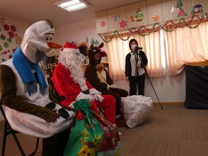 代表のお友だちが「サンタさんはなににのってきたの?」「すきなくだものはなんですか?」と質問を