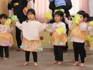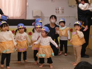 その後、「サンタさんにみんなの発表を見せてあげよう!」ということで、いちご・もも組でダンスや生活発表をすることに!