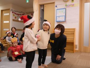 最後には一人ずつ自分の名前を発表し、サンタさんから拍手をもらっていました。